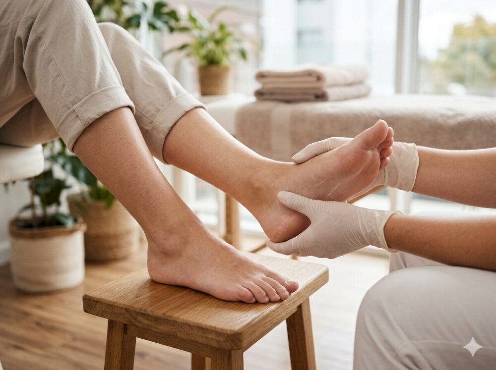 かかとケアをされている